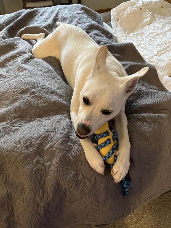 - DealFrisco Tug & Fetch Rubber & Rope Football Dog Toy, Medium/LargeBy$10.99 Chewy PricePromo, Spend $100, Get $30 eGift Card with code NEWYEAR +1 deal