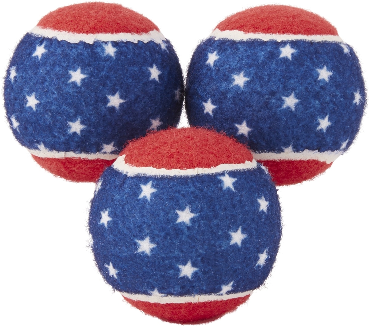 Frisco Fetch Squeaking American Flag Tennis Ball Dog Toy, Medium, 3 count