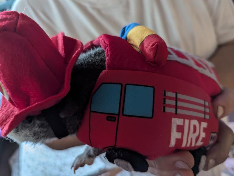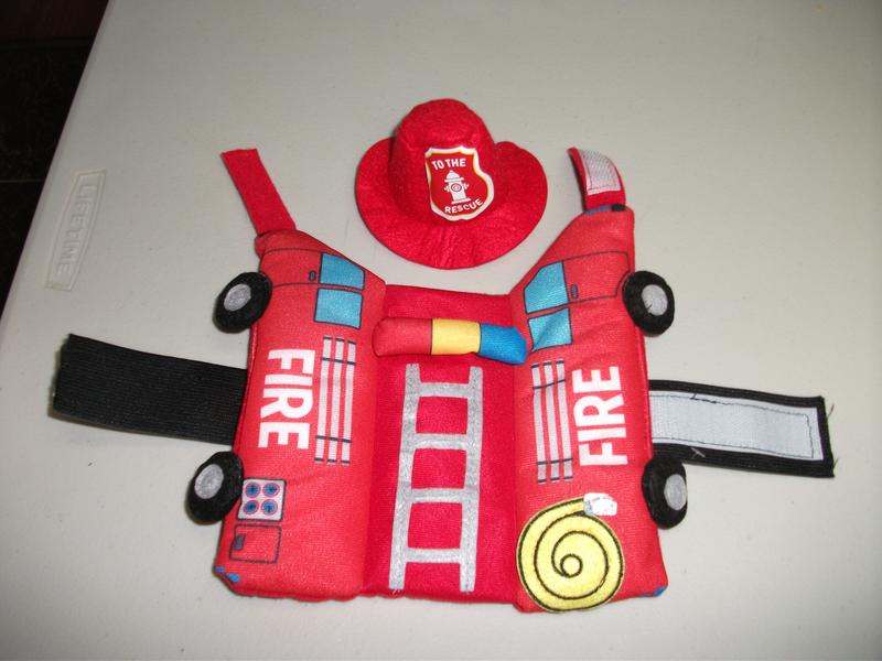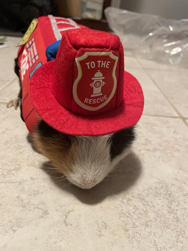 We got this fire truck costume for our guinea pig, Russ. It fit him perfectly. Easy to put on. Nice fabric. The elastic and velcro are long enough not to be restricted around his chubby belly. This was a great addition to add to his wardrobe and made such cute pictures that will last us a lifetime!