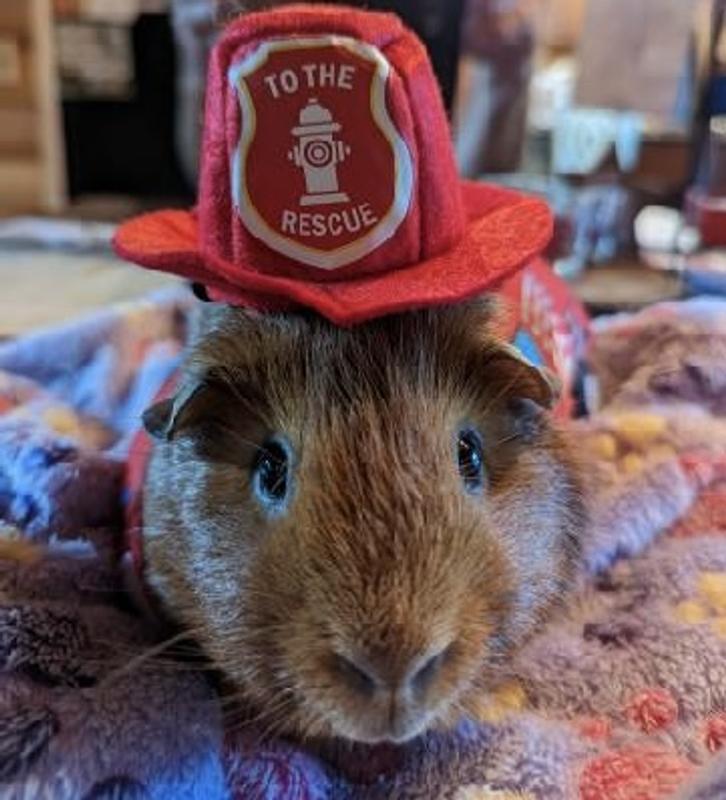 WeeWoo! Firefighters Peanut and Popcorn reporting for duty! These two little guinea pigs love being firefighters. The outfit is full of cute details like a little
