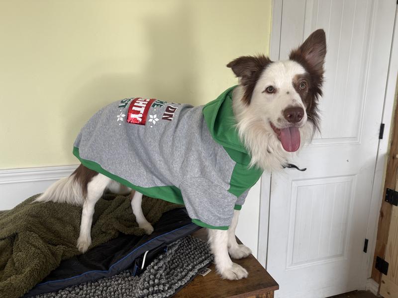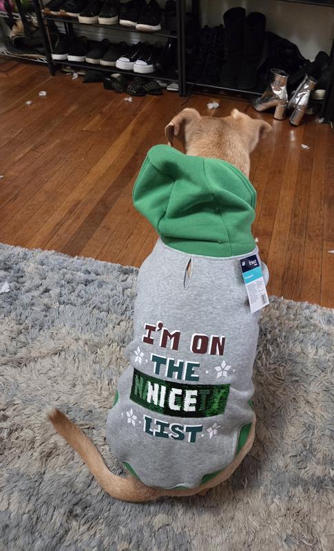 Frisco Flip Sequin Naughty/Nice List Dog & Cat Hoodie, Heather Gray, X-Large