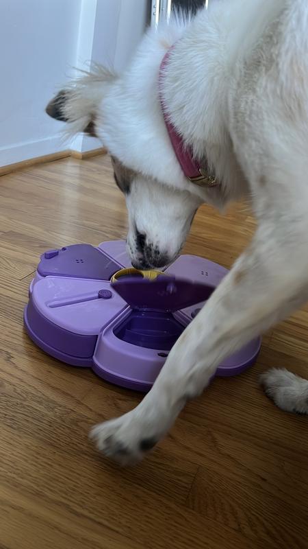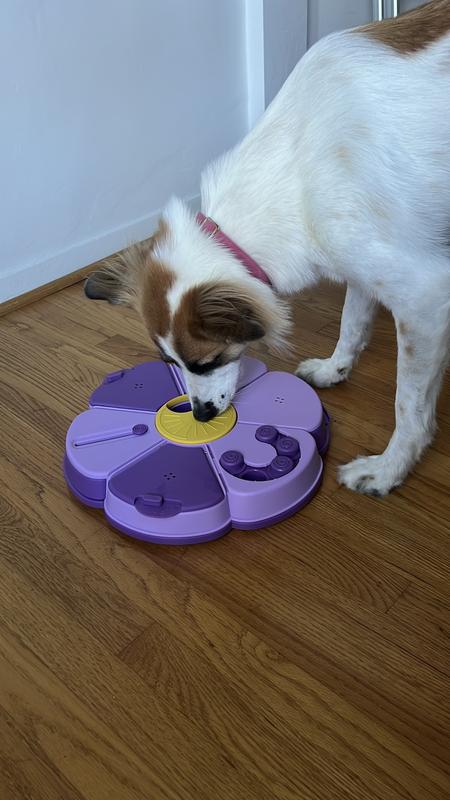 • This flower-themed puzzle toy tests your dog’s problem-solving skills with various challenges, providing mental stimulation that exercises your dog’s brain and prevents doggy boredom.