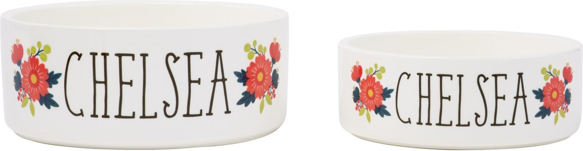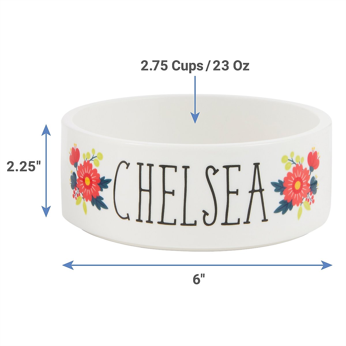 Frisco Flower Ceramic Personalized Dog Bowl, 2.75 cup
