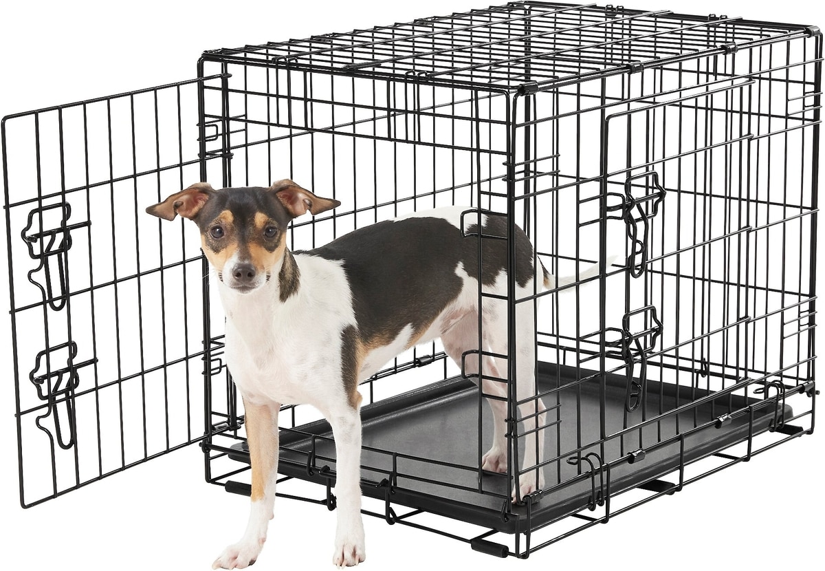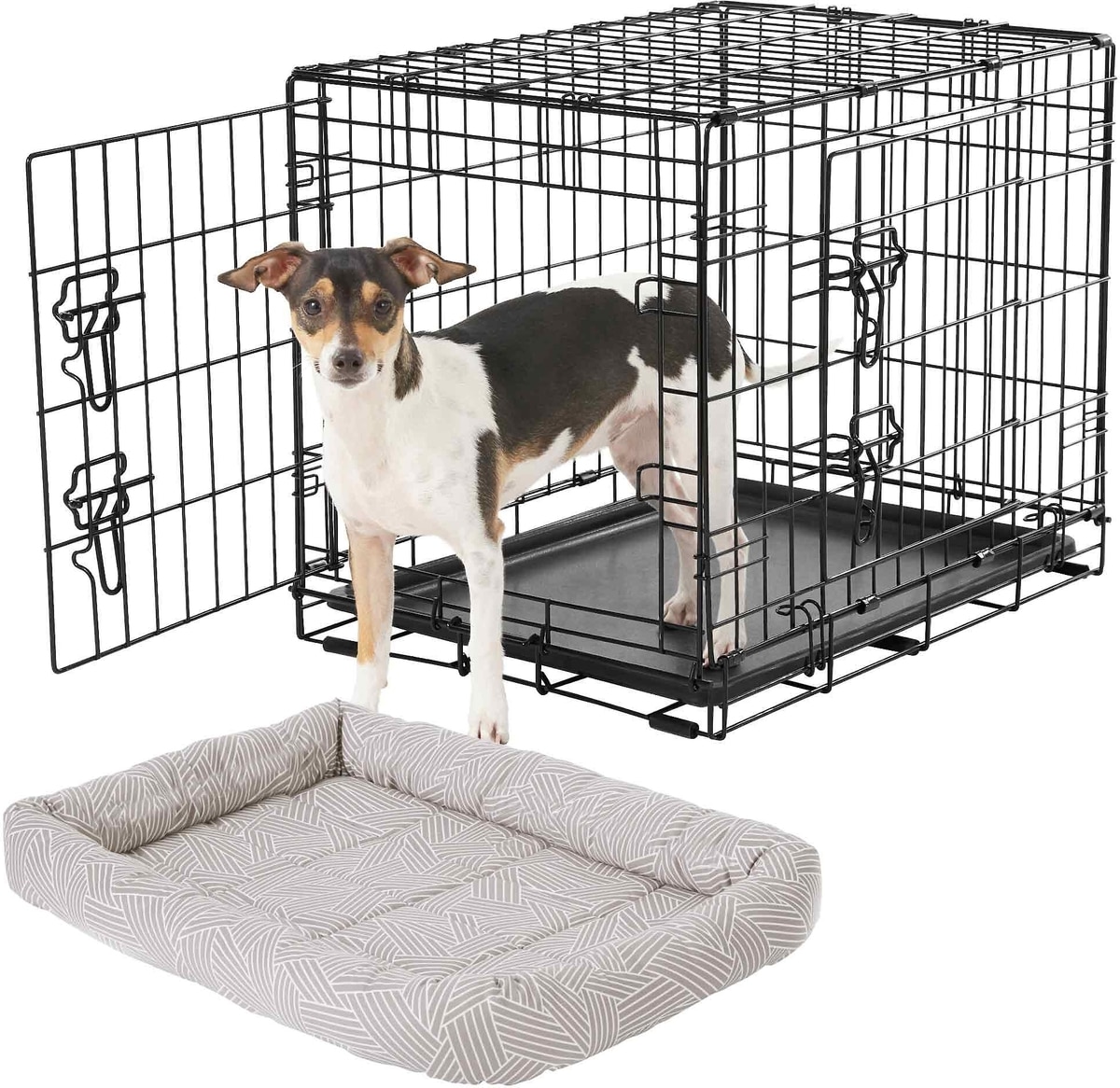 Bundle: Frisco Fold & Carry Double Door Collapsible Wire Dog Crate, 24 inch & Frisco Gray Basket Weave Dog Crate Mat, 24-in