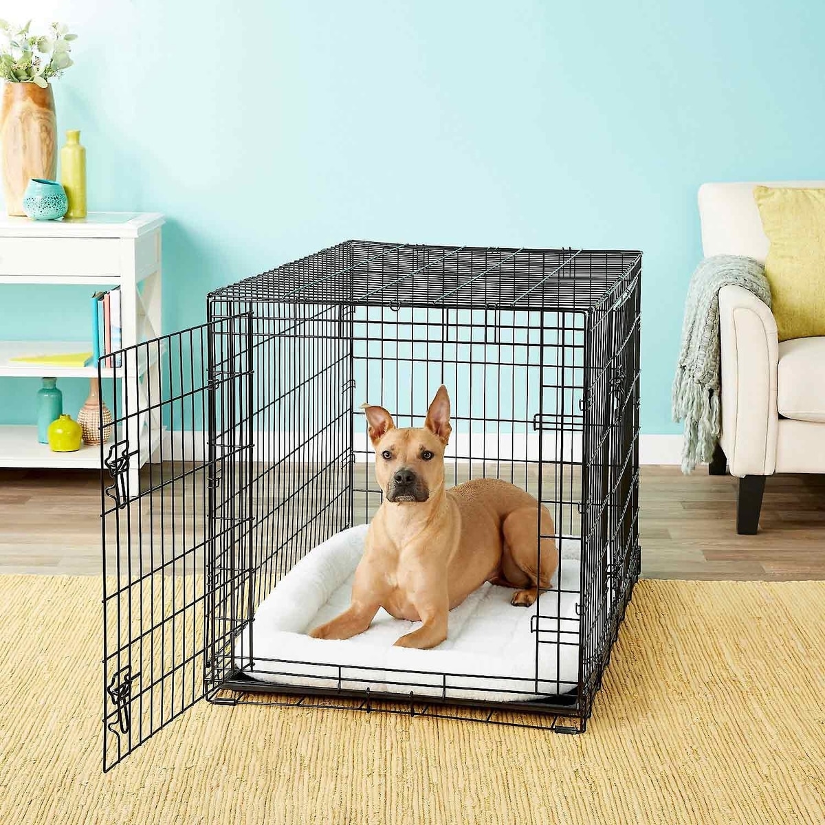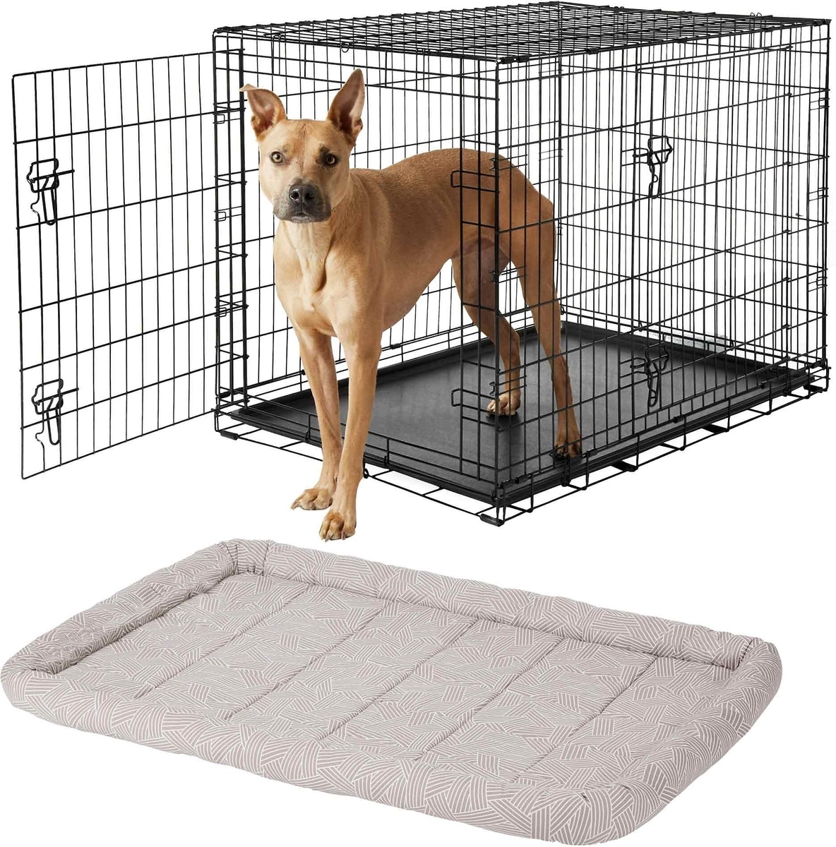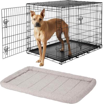 Bundle: Frisco Fold & Carry Double Door Collapsible Wire Dog Crate, 42 inch & Frisco Gray Basket Weave Dog Crate Mat, 42-in