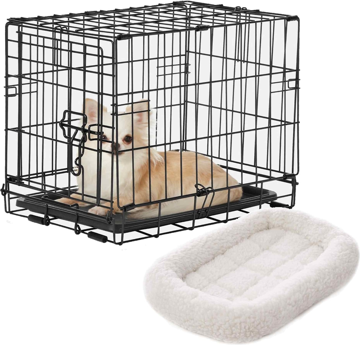 Bundle: Frisco Fold & Carry Single Door Collapsible Wire Dog Crate, 18 inch & Frisco Quilted Dog Crate Mat, Ivory, 18-in