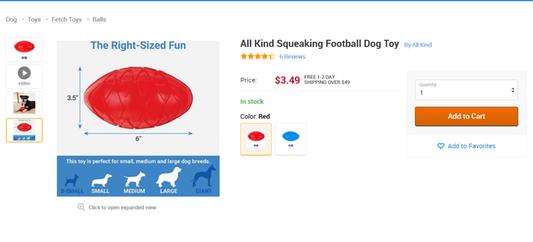 Frisco Football TPR Squeaky Dog Toy, Red, Medium