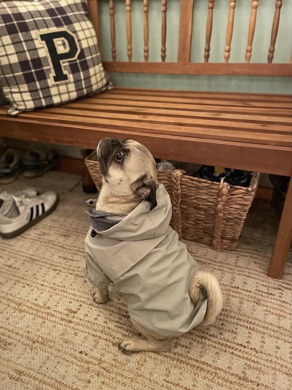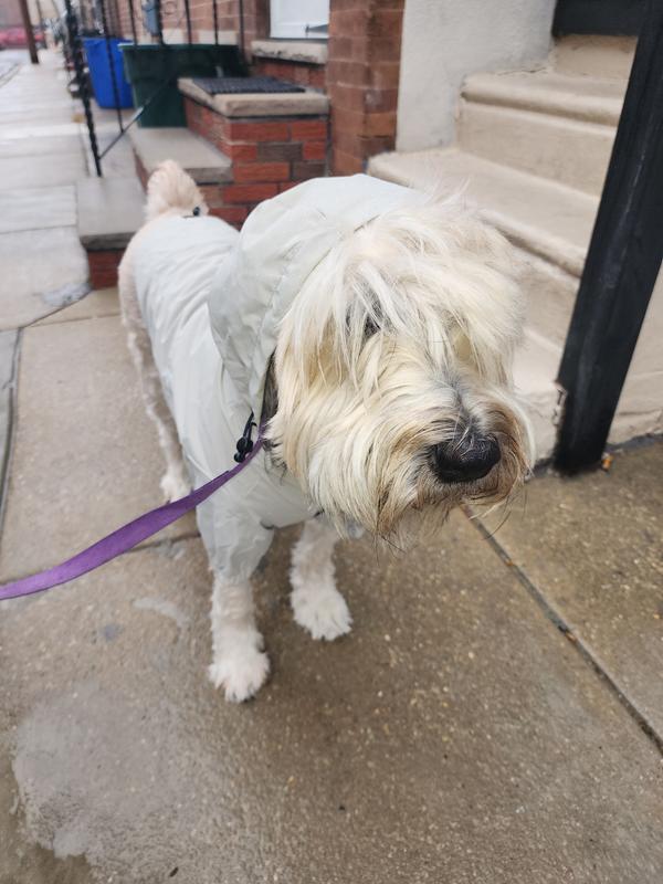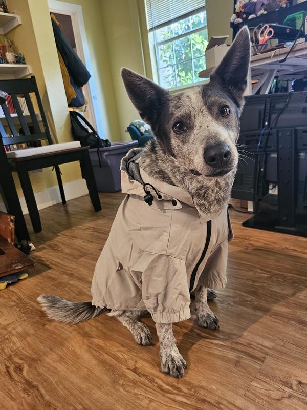 - This lightweight windbreaker features a soft, jersey lining and water-resistant nylon exterior to keep your pet dry without weighing them down. A storm flap even protects the leash hole from water getting in.