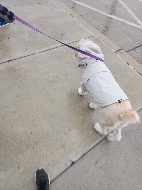 The wind breaker itself is nice lighweight, high quality material. I got this for those rainy, dreary days since my corgi doesn't care for the rain. 😅 Unfortunately,
