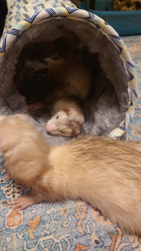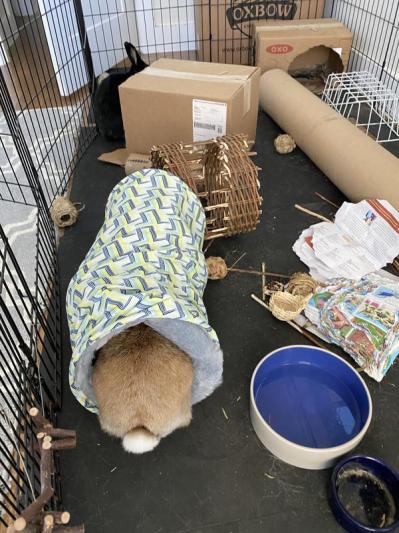 #ReceivedFreeProduct We got a couple of these for different areas for our 2 medium sized rabbits. One rabbit loves it (pictured) and the other rabbit doesn't pay too much attention to it. I like that the pattern/colors look nice so it isn't an eyesore. My rabbits like plush areas to hide and the inside is pretty soft. Our bunnies are medium/large and still fit just fine even though a guinea pig is pictured on the box. It will definitely depend on your individual pet's preference because as I said while both our bunnies like hiding in boxes only one really enjoys this plush crinkle tunnel.