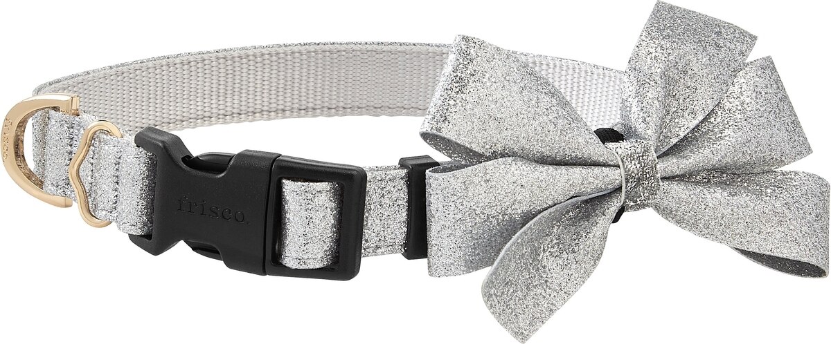 Frisco Glitter Dog Collar with Removable Glitter Bow, Gray, SM - Neck: 10-14-in, Width: 5/8-in