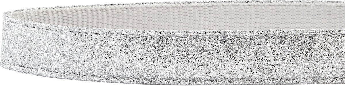 • Made with polyester webbing and stitched-in, glittery material throughout.