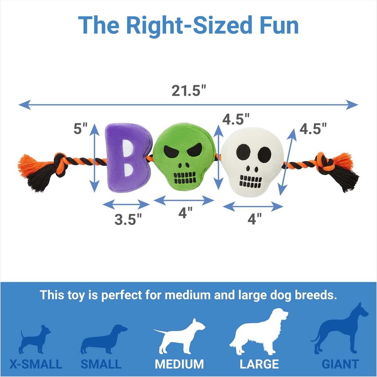 - Brings the spirit of the spooky season to your medium or large dog’s Halloween toy collection.