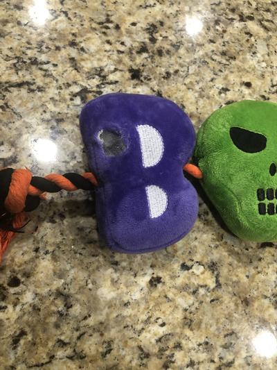 I bought this for my girl because she loves playing tug o war and she also loves squeaky toys. This one fits the bill perfectly & I love the Halloween theme. This is her go to toy right now.