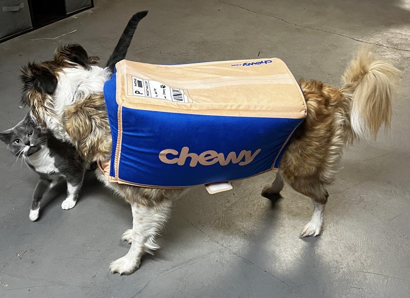 The Chewy box costume is super cute and easy to put on. The material is soft and comfortable for your pet to wear. This would be super fun to pair with one the UPS