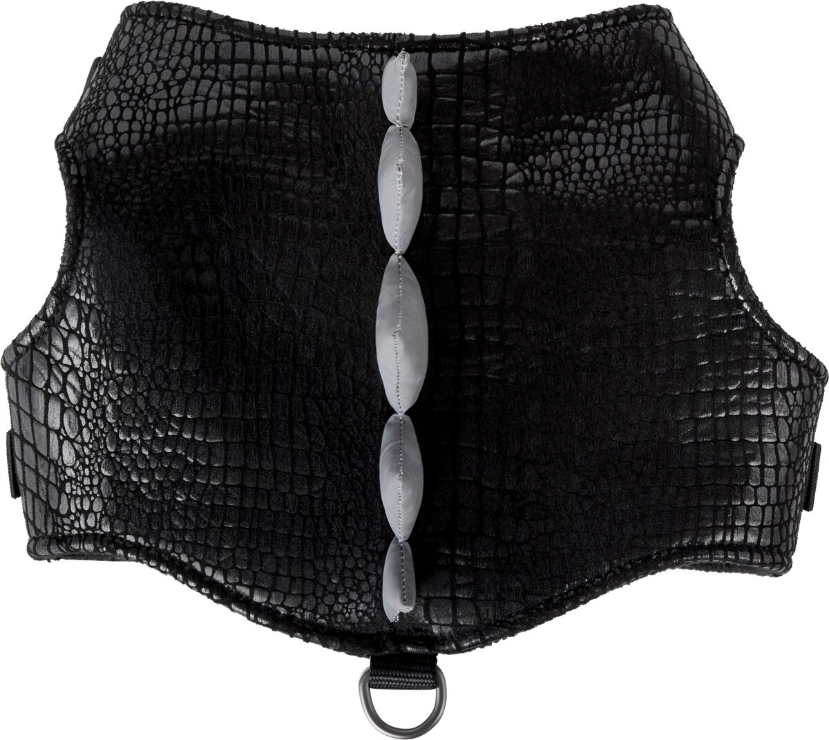 - Easy to put on with hook-and-loop fasteners and handy buckles, with a metal d-ring on the back for easy leash attachment.