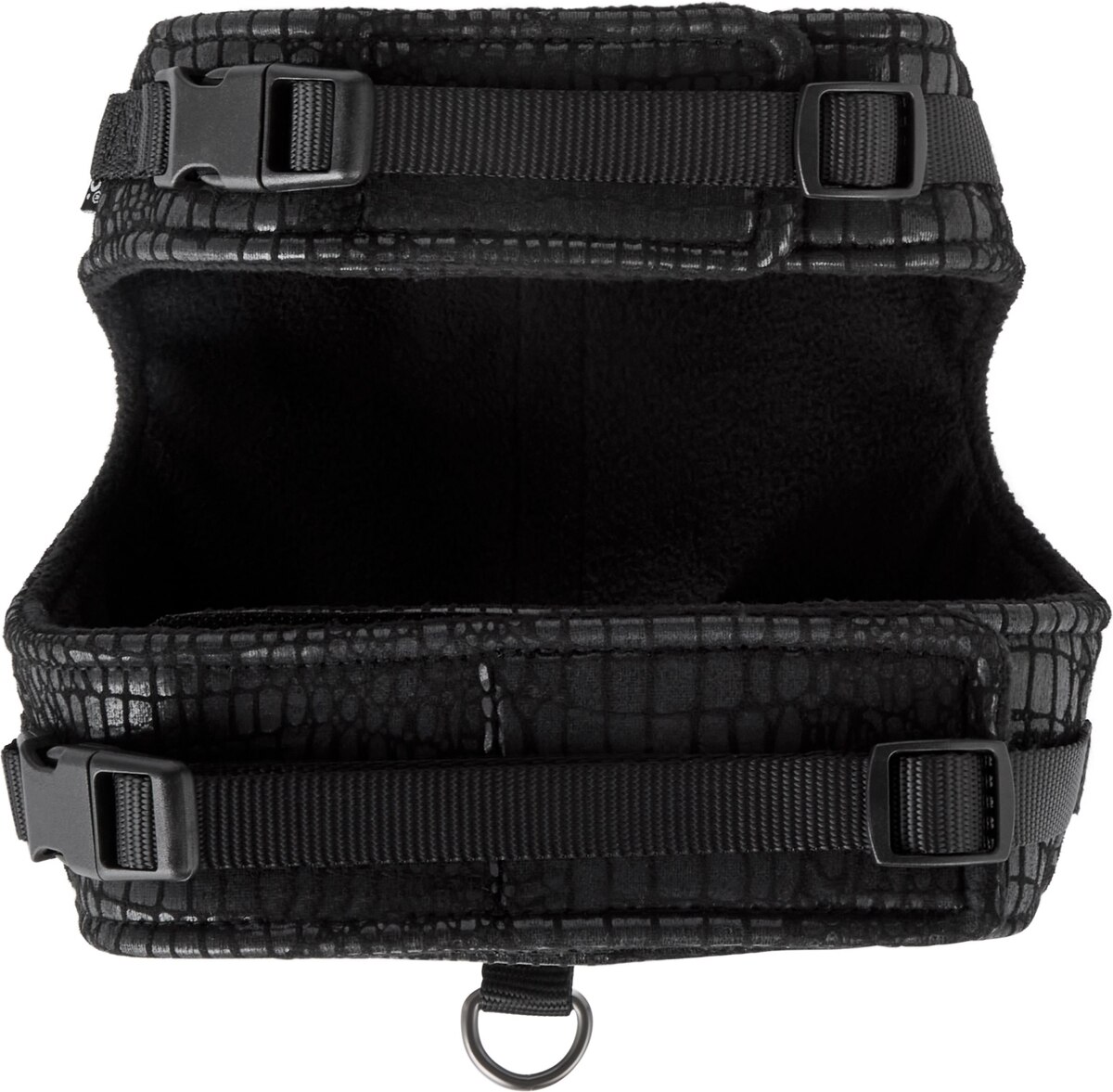 - Easy to put on with hook-and-loop fasteners and handy buckles, with a metal d-ring on the back for easy leash attachment.