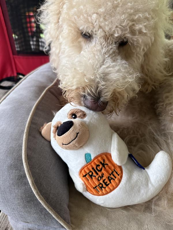 This toy is an instant favorite in our house! The design is super cute and festive—perfect for spooky season—and the plush feels soft but durable enough to hold up to lots of playtime. My pup loves the squeaker inside and carries it around everywhere. It’s just the right size for medium dogs—not too small, not too bulky. I also love that it doubles as a cuddle toy when my dog settles down. Overall, it’s a fun, well-made Halloween toy that adds a festive touch while keeping my dog entertained!