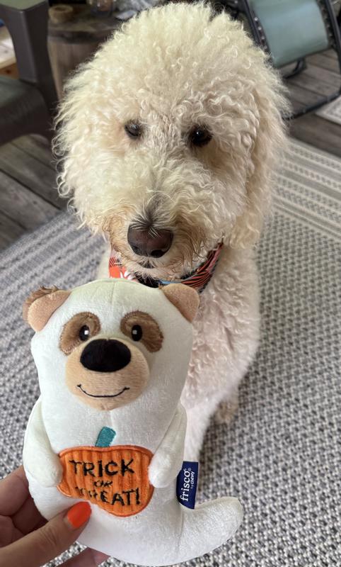- This Frisco bear gets a Halloween-themed ghost outfit to bring a spooky spirit to the playtime tossing and post-game cuddles.