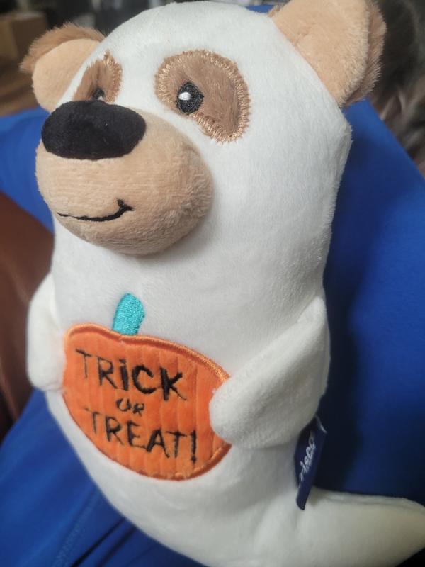 This toy is an instant favorite in our house! The design is super cute and festive—perfect for spooky season—and the plush feels soft but durable enough to hold