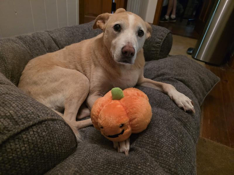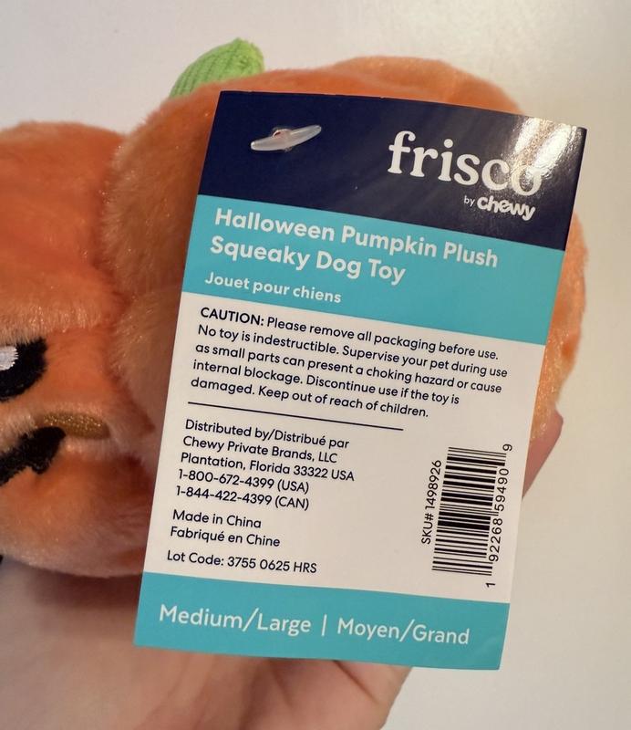 Frisco Halloween Pumpkin Plush Squeaky Dog Toy, Medium/Large