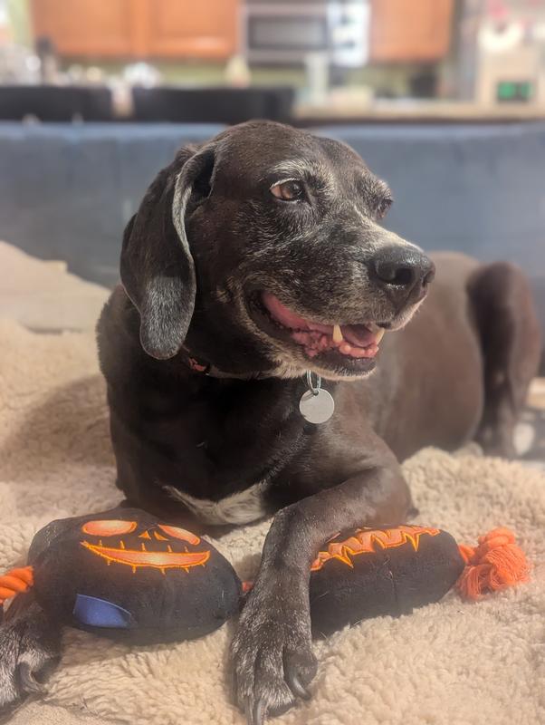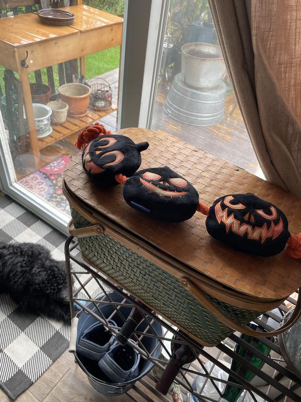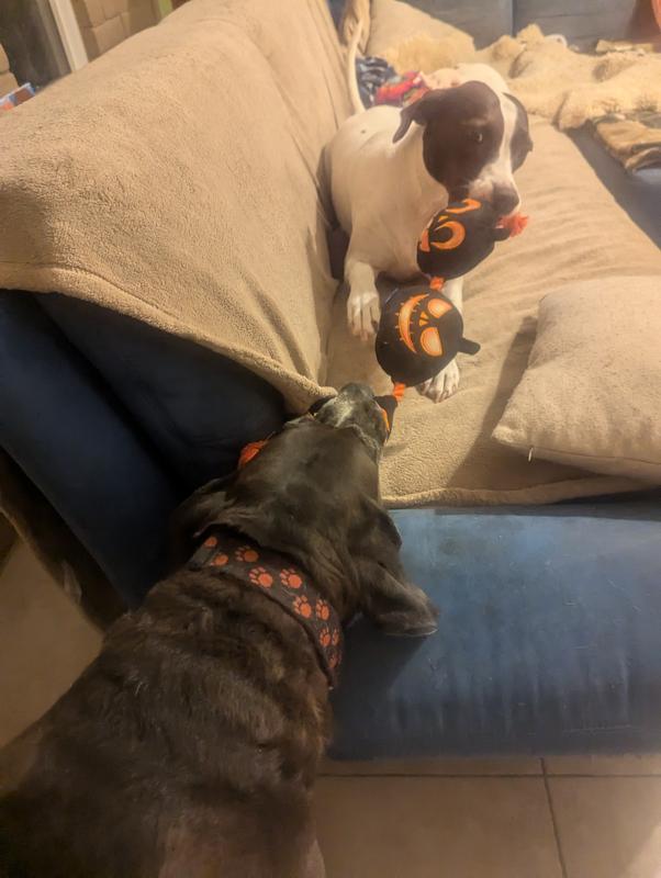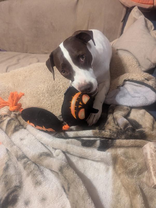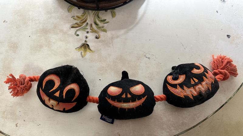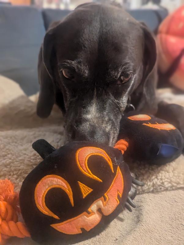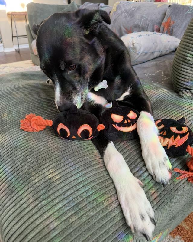 Frisco Halloween Pumpkins Plush with Rope Squeaky Dog Toy, Large/X-Large