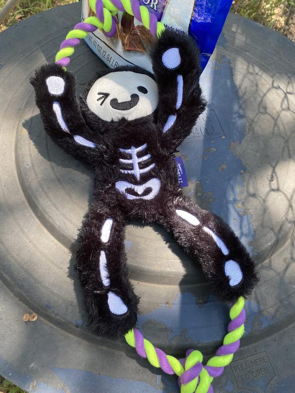 Frisco Halloween Skeleton Plush with Rope Squeaky Dog Toy, Medium/Large