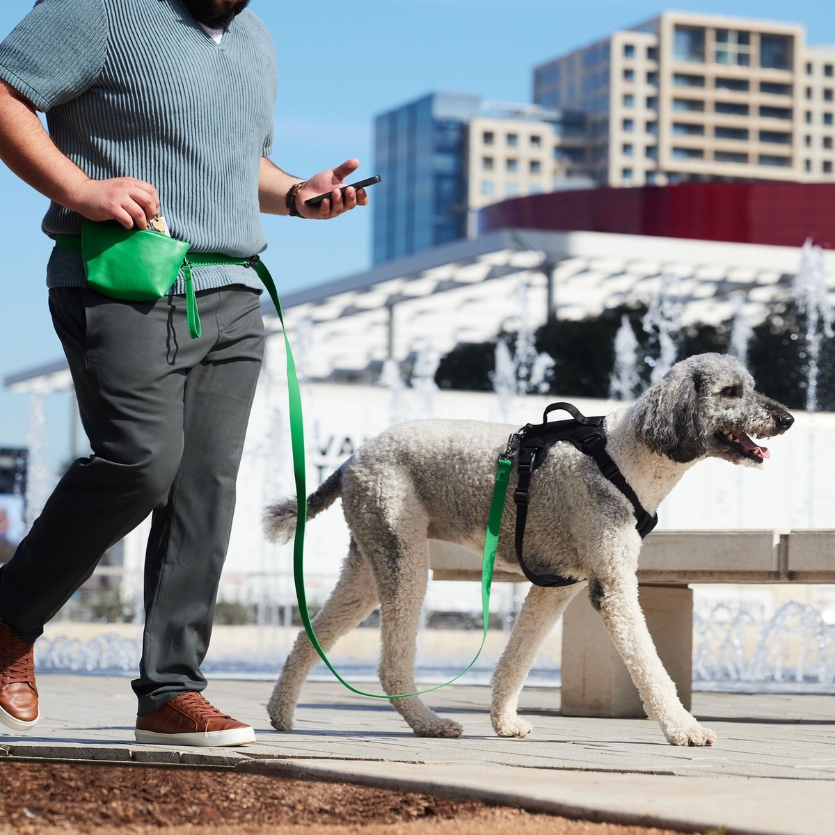 Frisco Hands Free Dog Leash with Removable Phone Pouch, Green, Medium/Large