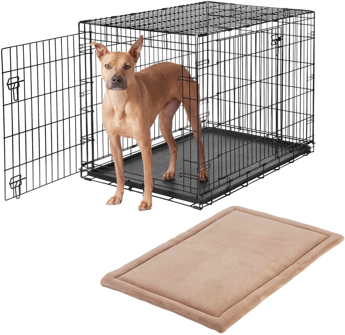 Bundle: Frisco Heavy Duty Fold & Carry Double Door Collapsible Wire Dog Crate, 42 inch & Frisco Micro Terry Dog Crate Mat, Taupe, 42-in