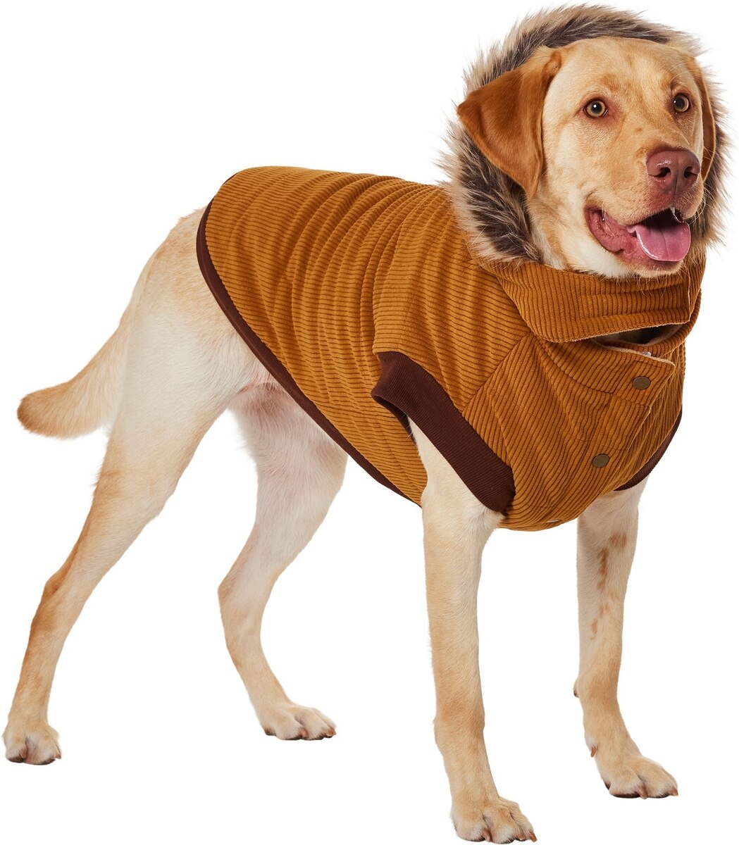 Frisco Heavy Weight Lux Corduroy Insulated Dog & Cat Coat with Fur Trimmed Hood, XX-Large
