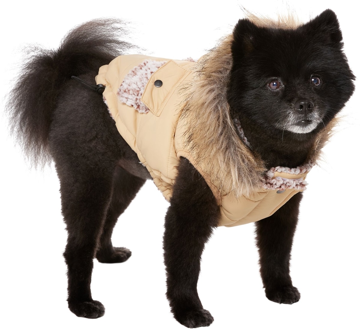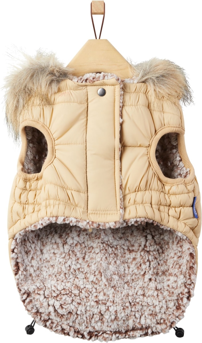 Frisco Heavy Weight Matte Quilted Dog & Cat Parka with Cozy Fleece Lining, Tan, Medium