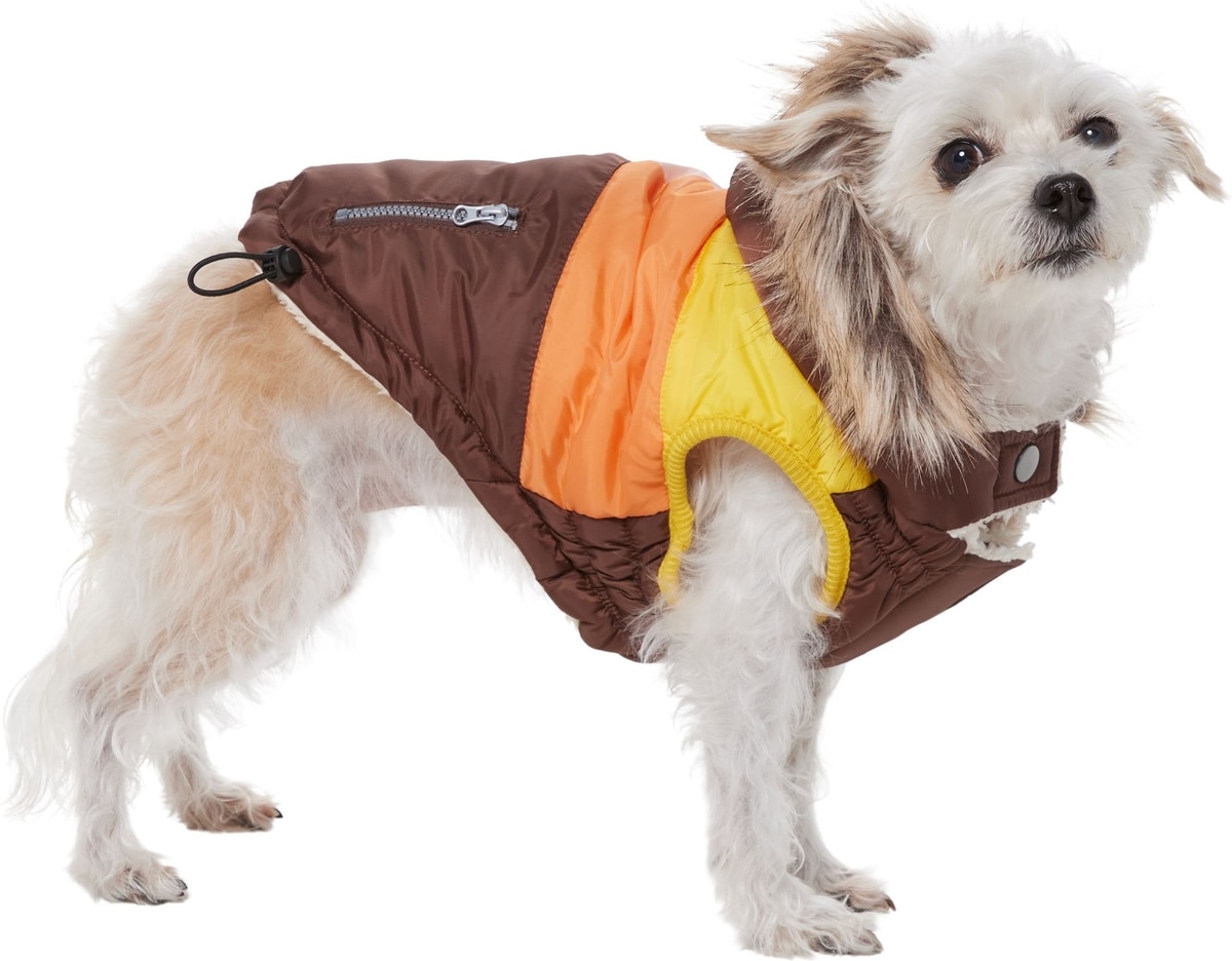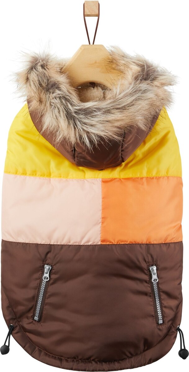 Frisco Heavy Weight Urban City Colorblock Dog & Cat Parka with Sherpa Lining, Brown, Small
