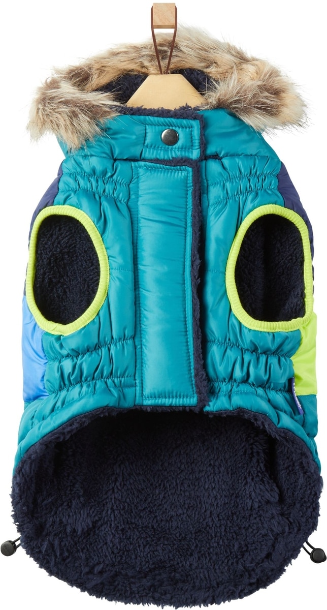 Frisco Heavy Weight Urban City Colorblock Dog & Cat Parka with Sherpa Lining, Green, Small