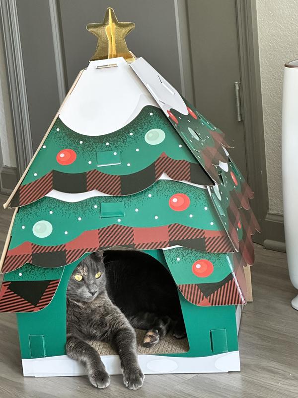 Frisco Holiday Christmas Tree Cardboard Cat House