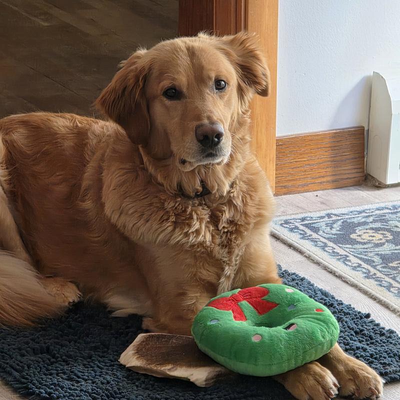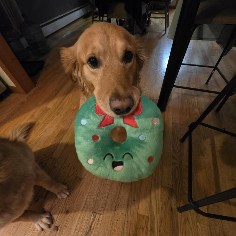 Frisco Holiday Wreath Plush Squeaky Dog Toy, Medium/Large