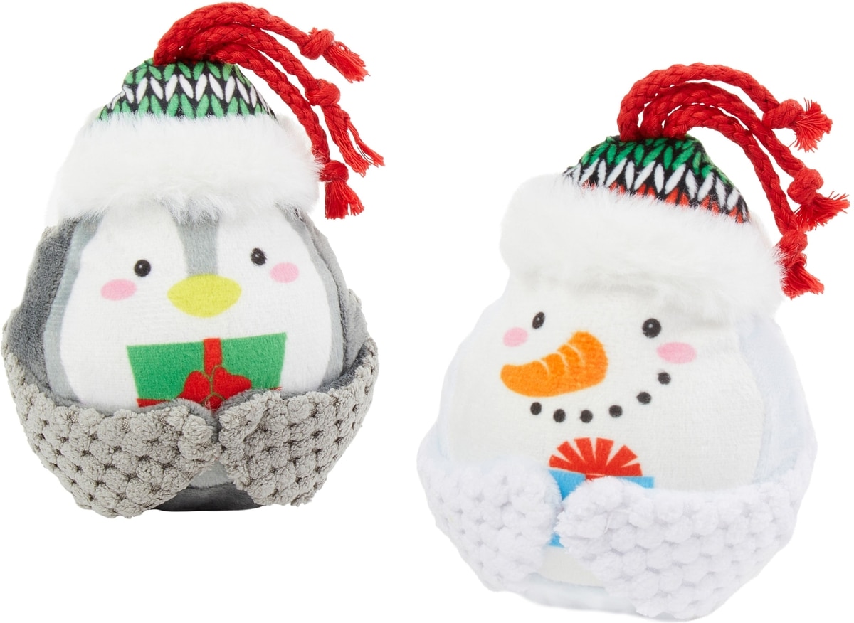 Frisco Holiday Penguin & Snowman Plush Squeaky Dog Toy, Small, 2 count
