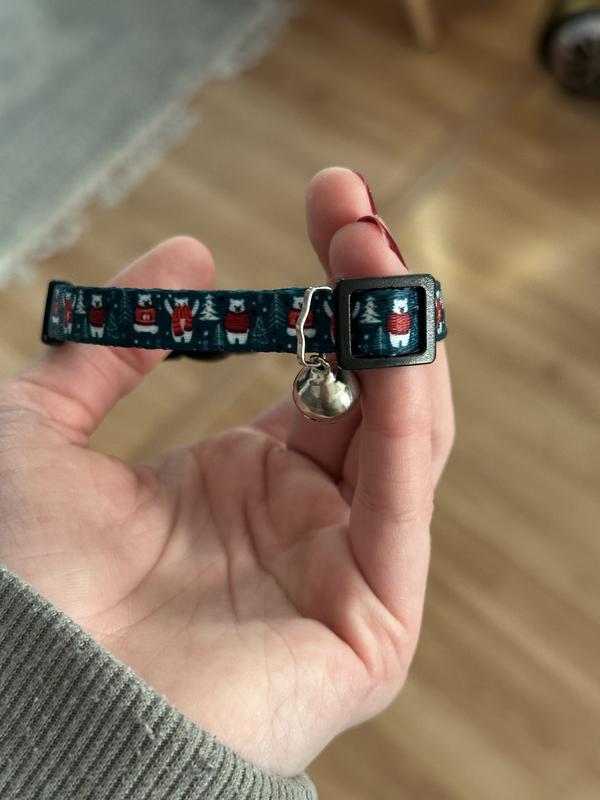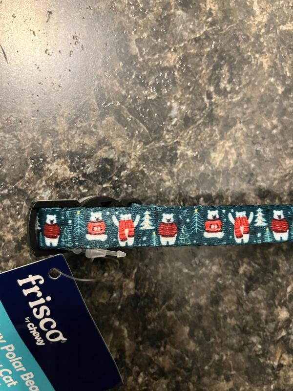 Frisco Holiday Polar Bears Print Polyester Breakaway Cat Collar with Bell, 8 to 12-in neck, 3/8-in wide