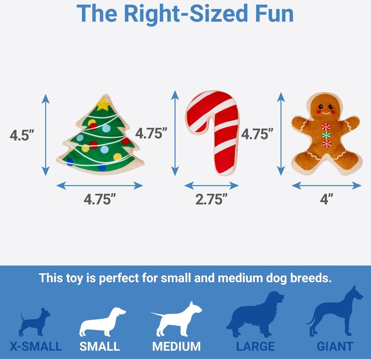 I hope frisco never stops making these. We bought one last christmas and every holiday themed one between - I have one dog (6 lbs) who loves smaller squeaky babies and one (10lbs) who loves the crinkly noises - so this is a huge hit in my house. The crinkly sheet can also be thrown like a frisbee - which is quite entertaining. These don't survive unattended super chewers, but the sheet and one or two cookies lasted months beyond the holiday which was a surprise for me - so very happy with the quality and price