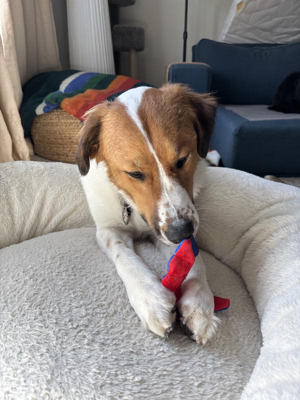 Every dog plays differently and, since not all toys are created equal, it’s always best to keep a close watch on your pup in case things get ruff. Supervised play will help toys last longer and most importantly keep your pal safe. No dog toy is truly indestructible, so always remove the toy from playtime if pieces begin to break off. Not recommended for chew sessions.