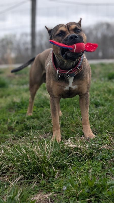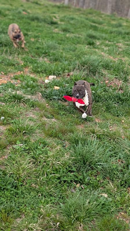 Our 45lbs cattle/pyr really loved this little toy! She not much of a fetcher but she enjoys smaller toys that she can run around the house with, usually our socks