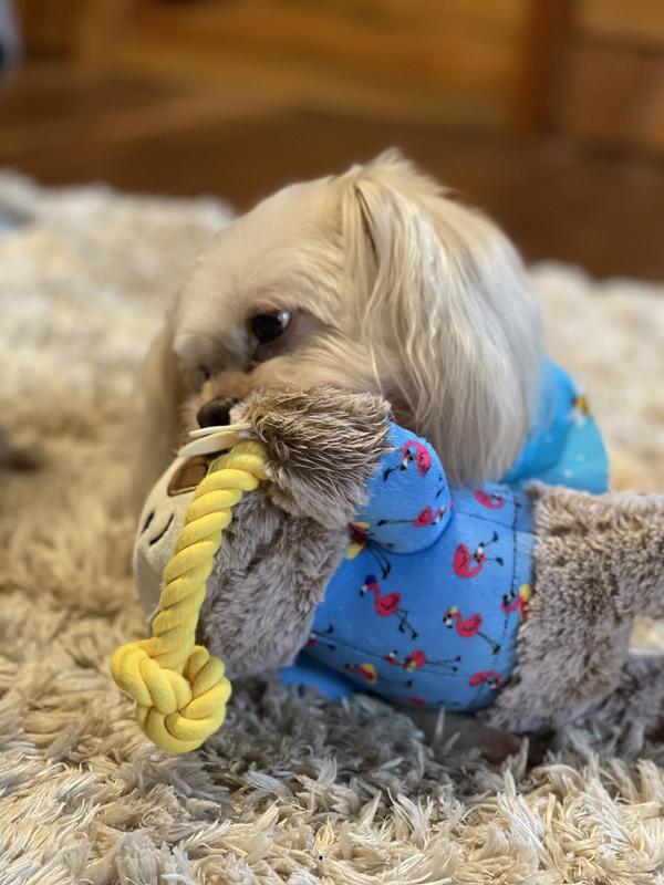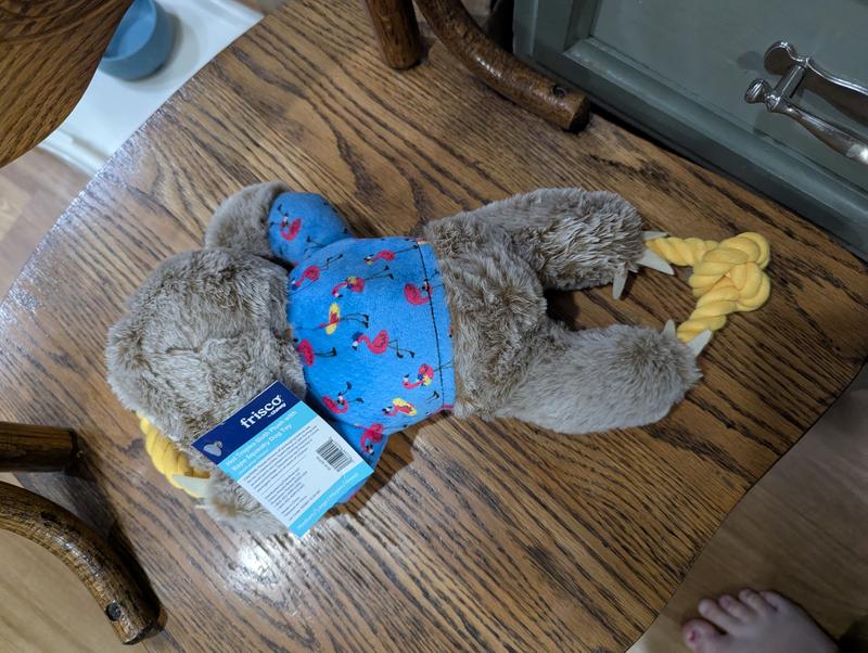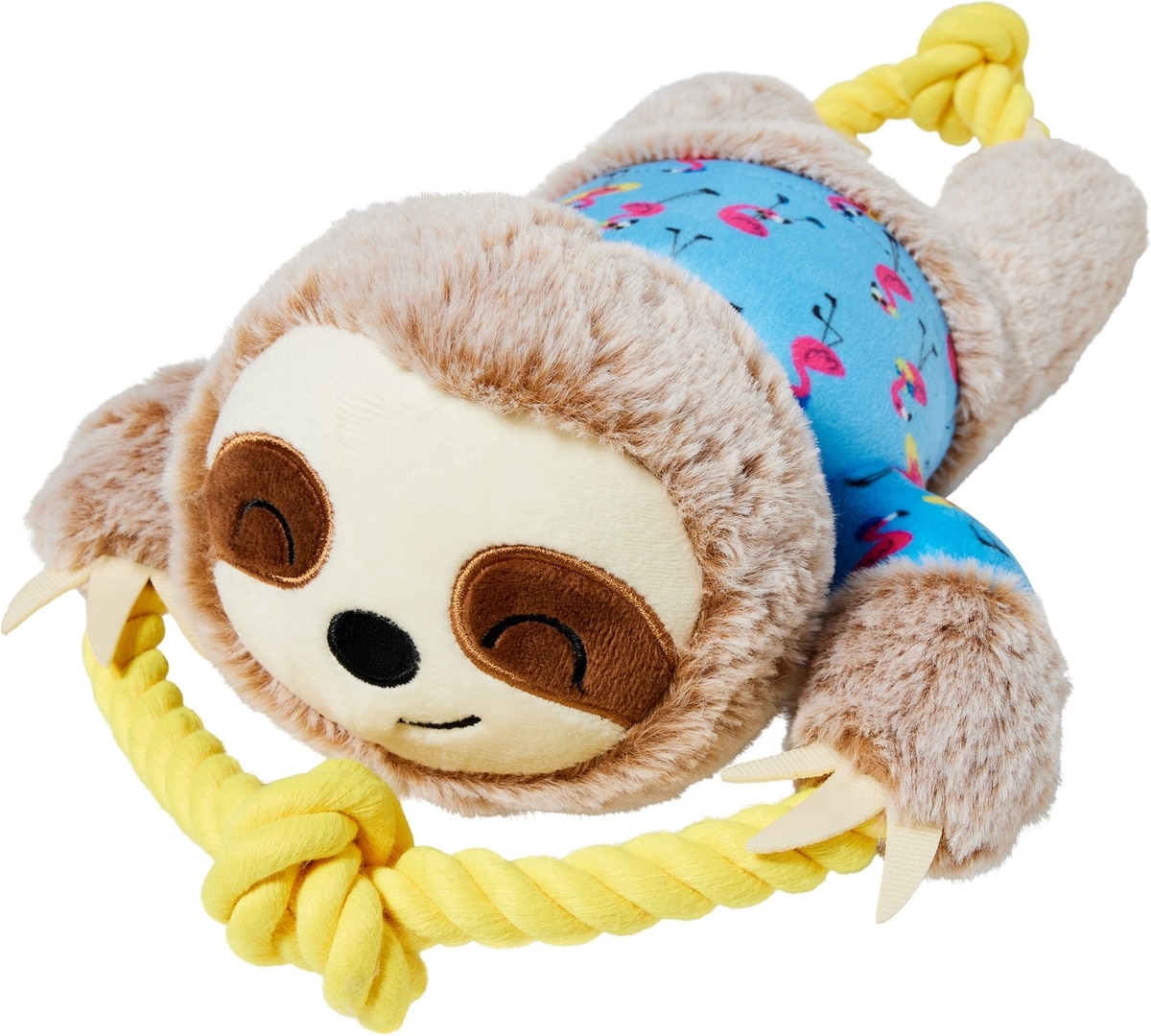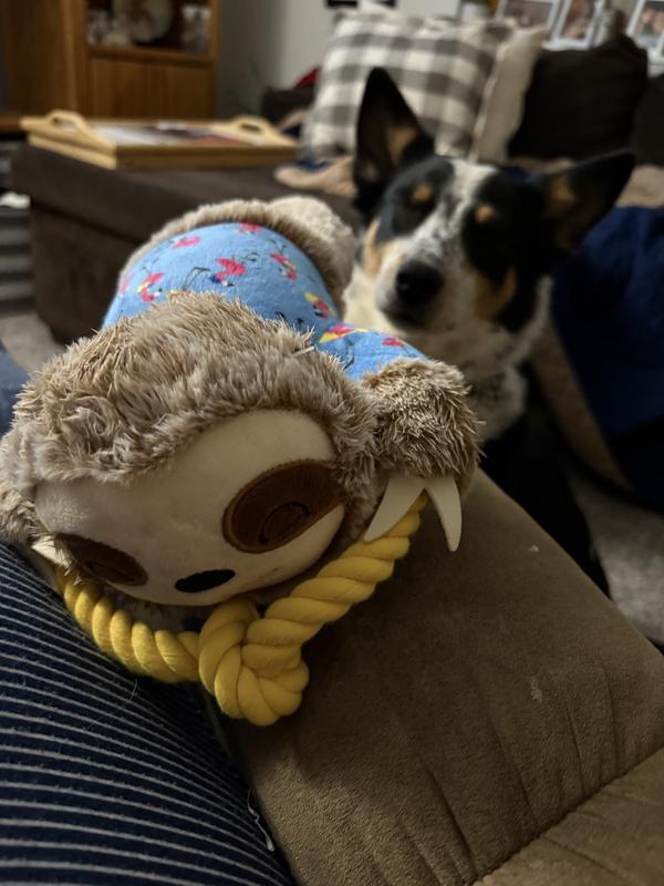 Frisco Summer Sloth Plush with Rope Squeaky Dog Toy, Medium/Large