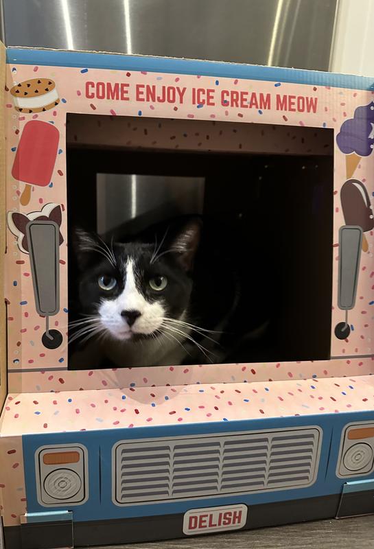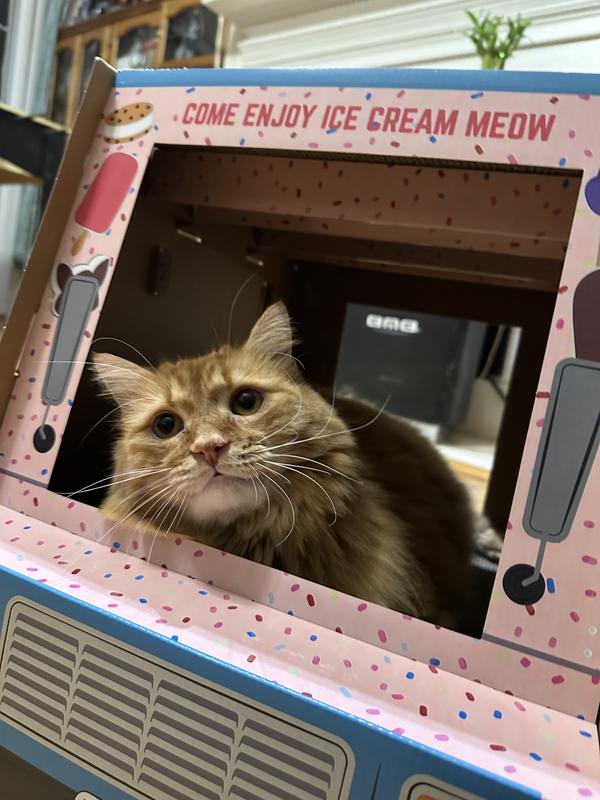 My cat went in here instantly and took on his new role as a business owner so quickly! He loves scratching inside and on top of the truck. It's also so much bigger than I was expecting. Highly recommend!