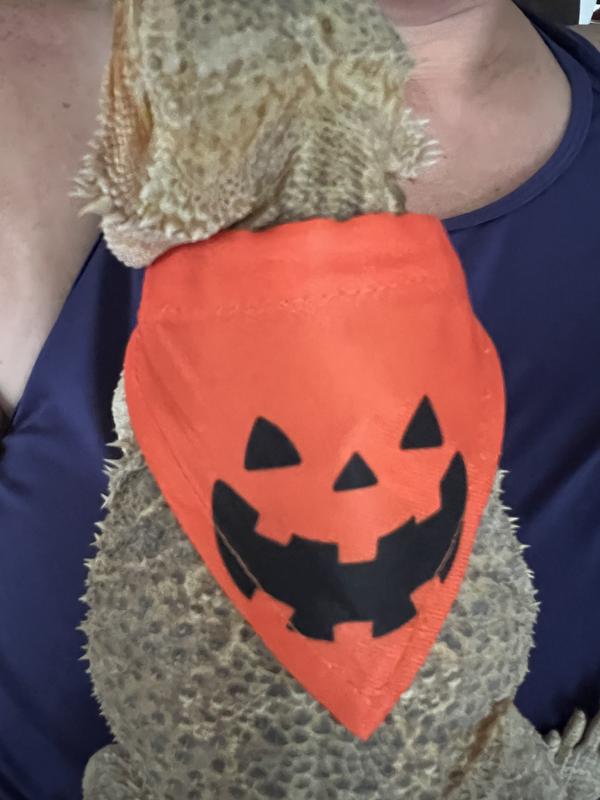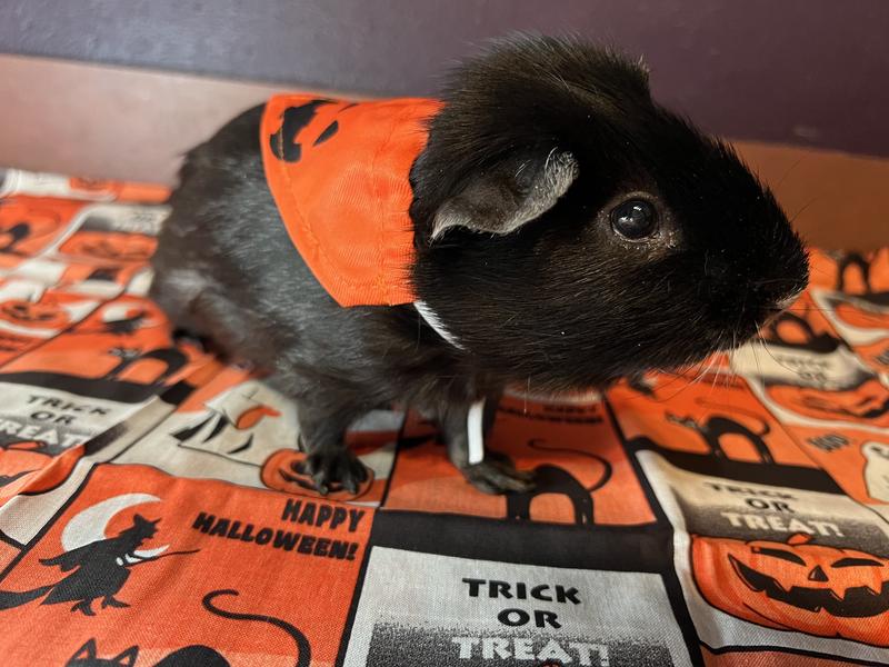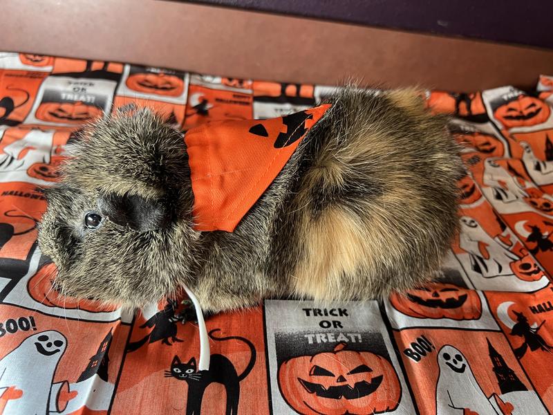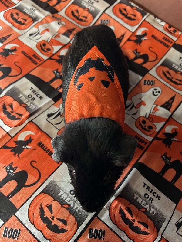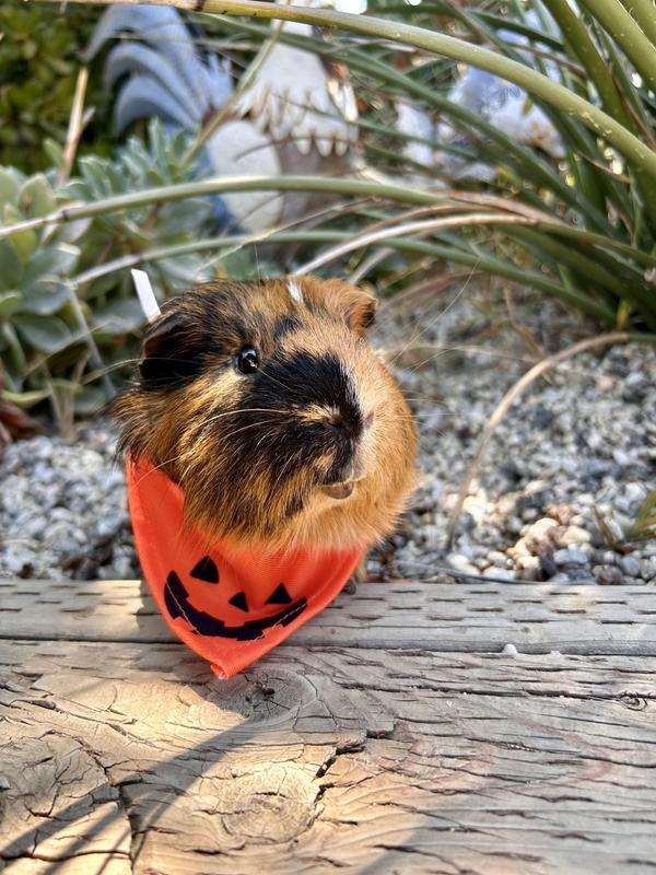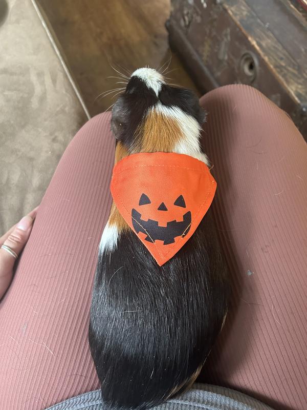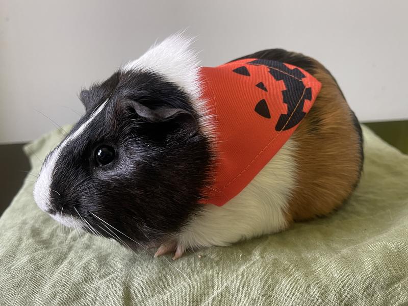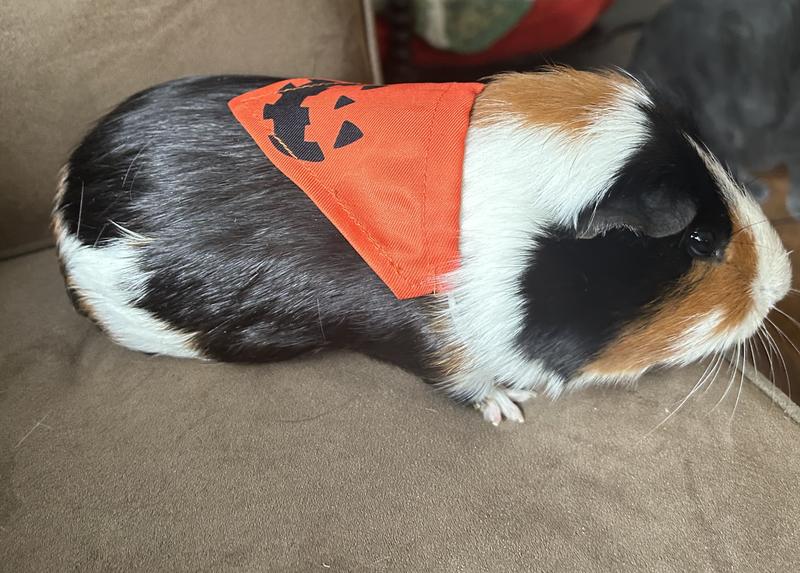 I can’t wait for Halloween to roll around so I can show all the trick-or-treaters my stunning guinea pig in his new bandanna. You can adjust the size of this easily, so it fits perfectly on my chunky dude!