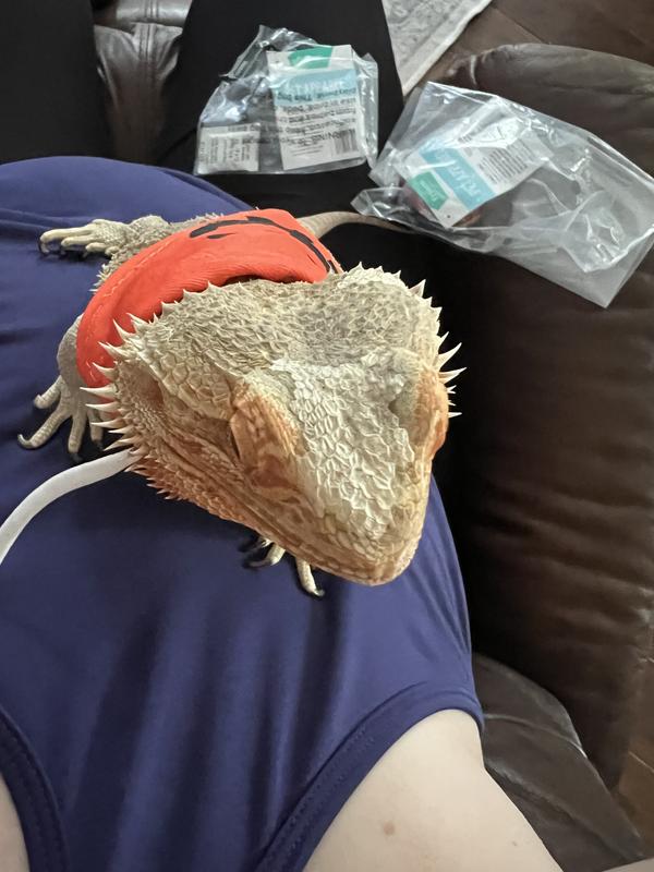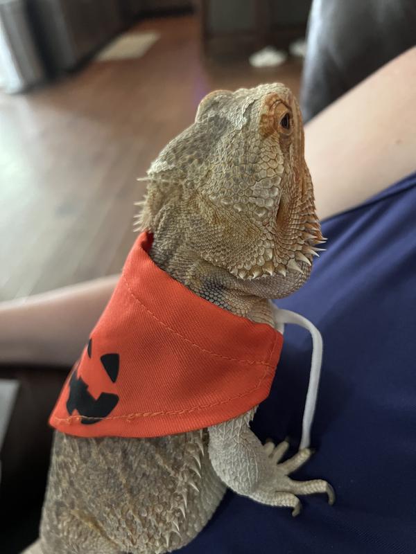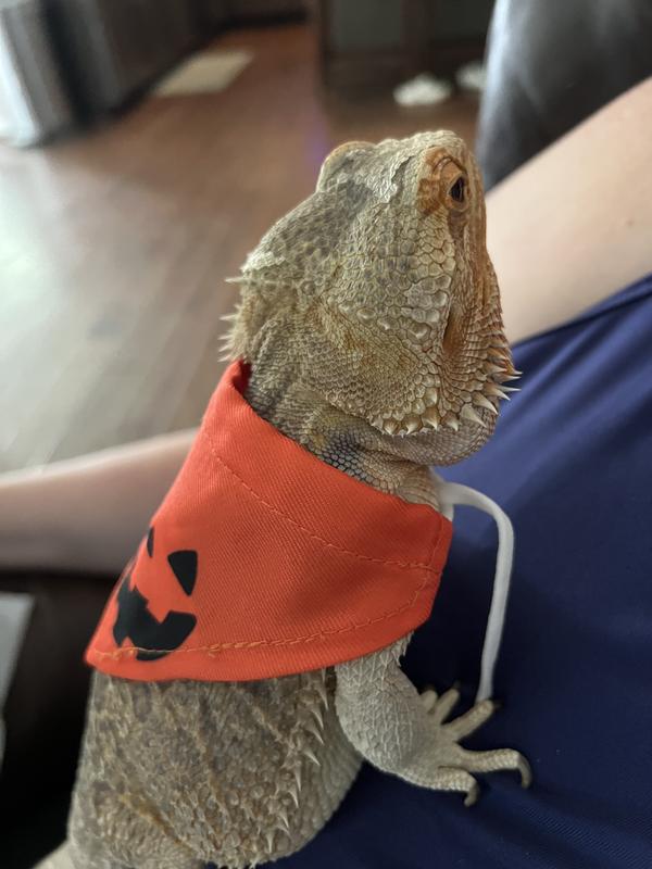 Super cute bandana!!! I love these for small pets. Has an elastic band to fit really well. Worked on our bearded dragon and out guineas. Highly recommend for any