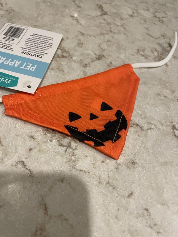 - Halloween pumpkin bandana comes in orange with a spooky Jack O’ Lantern face on the front.
