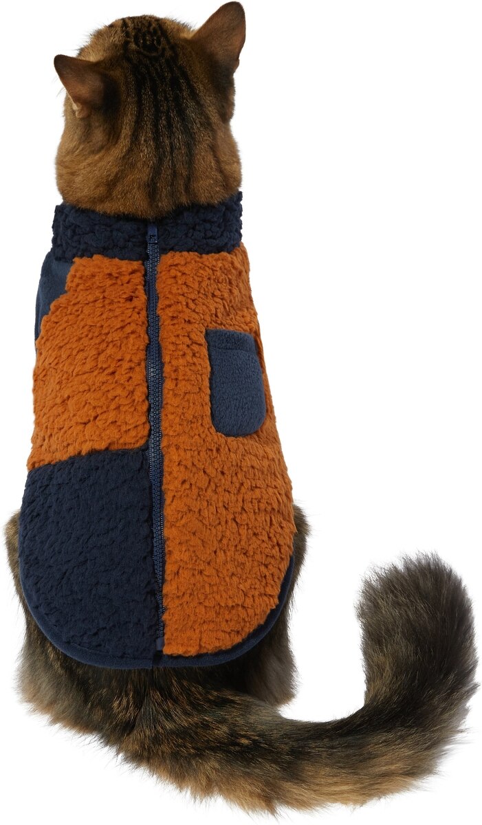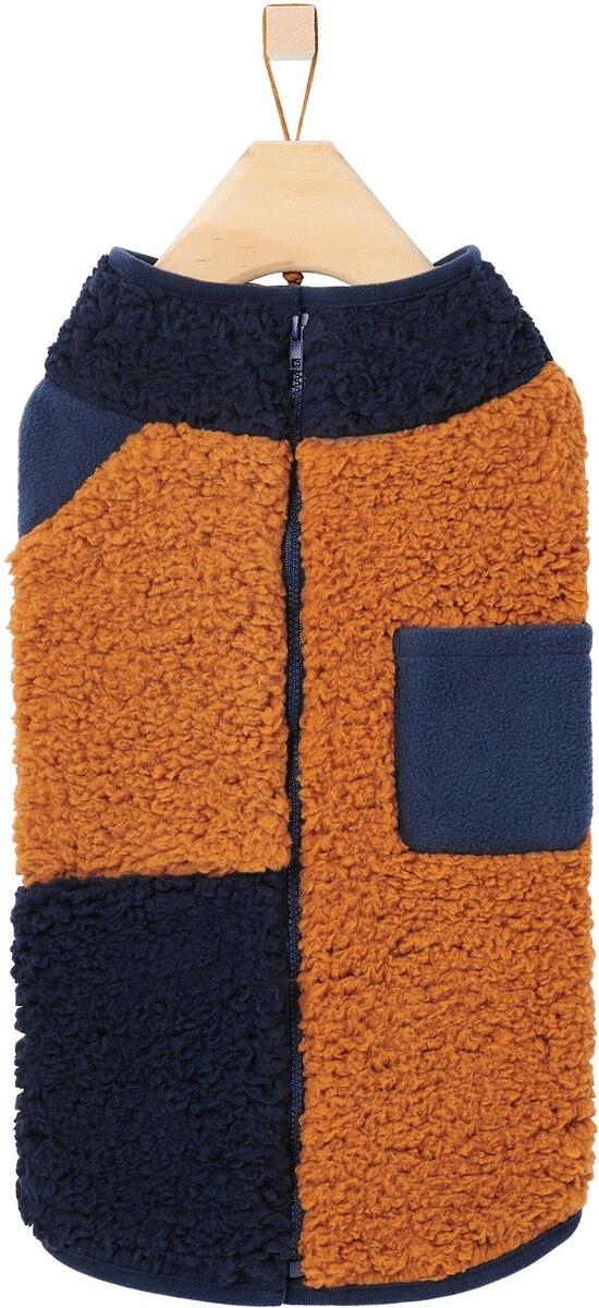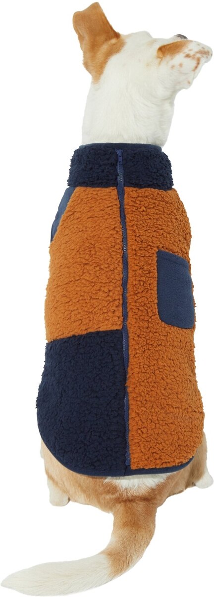 Frisco Lightweight Colorblock Dog & Cat Zippered Sherpa Fleece Vest, Blue/Brown, X-Small