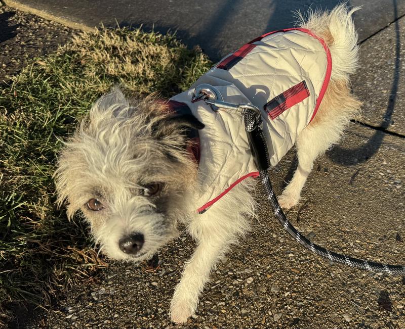 Frisco Lightweight Quilted Water-Resistant Reversible Insulated Dog & Cat Jacket, Gray/Red Plaid, Large