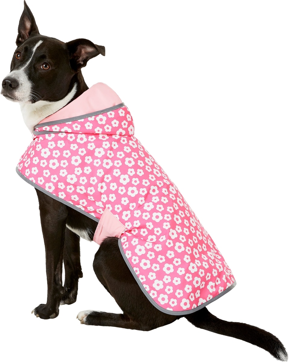 Frisco Lightweight Reversible Packable Travel Dog Raincoat, Pink, Large