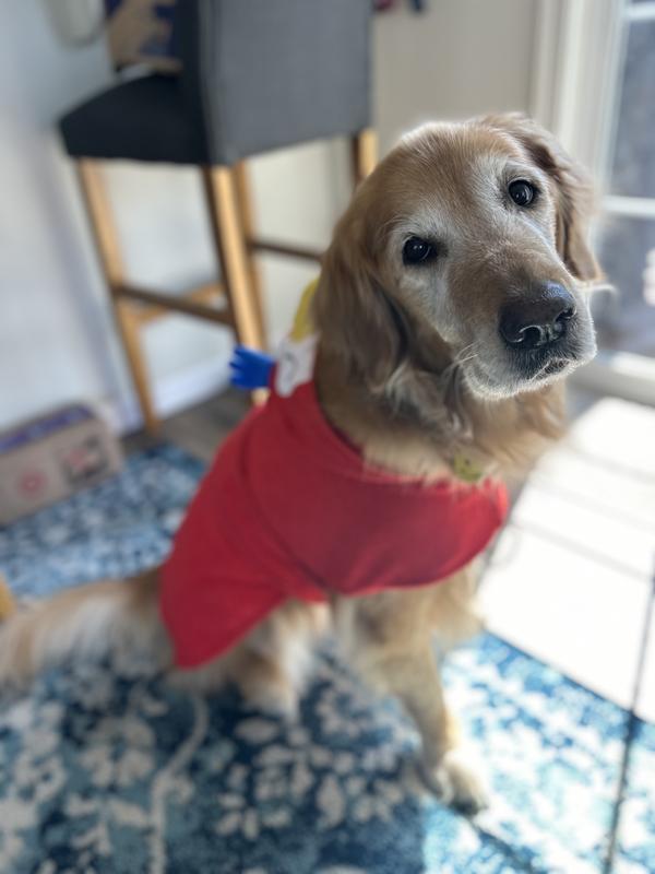 First, this is very cute and on a smaller dog would probably be great. I had a size large. However, I tried this on my 60 pound golden retriever and it was way too