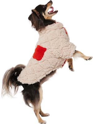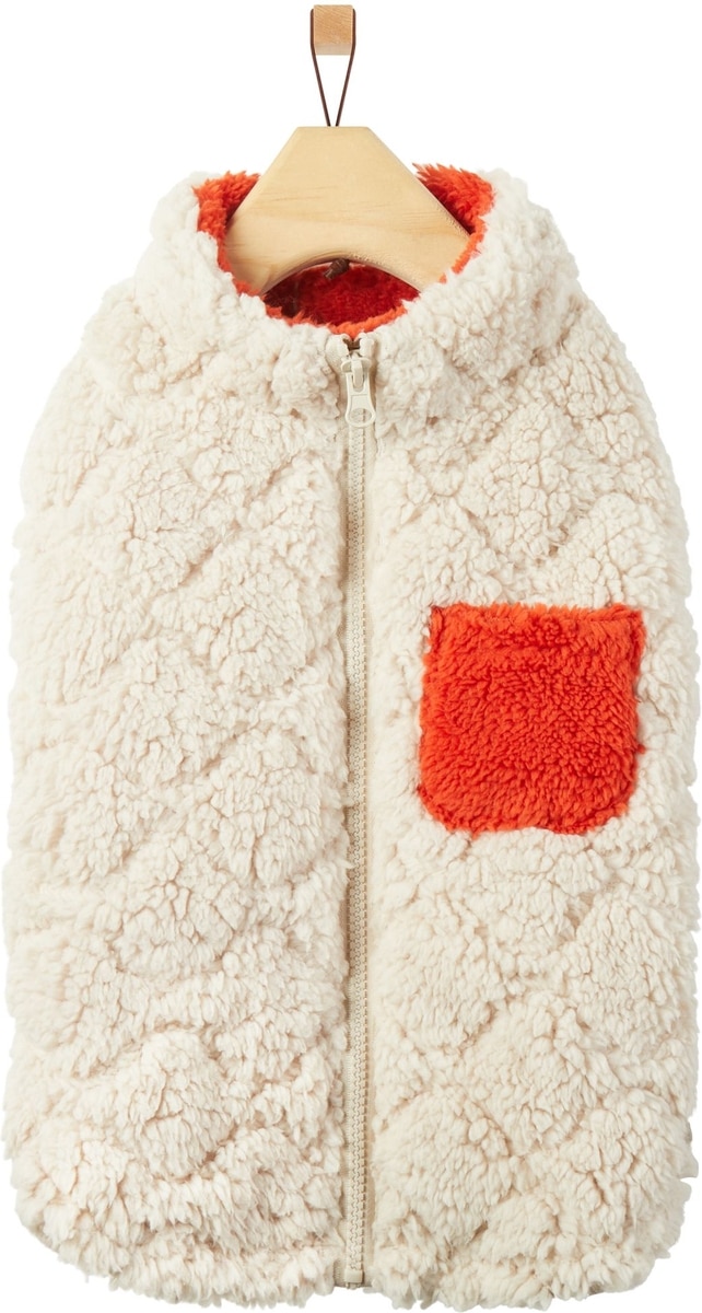 Frisco Medium Weight Quilted Sherpa Dog & Cat Faux Zipper Coat, Cream, Medium